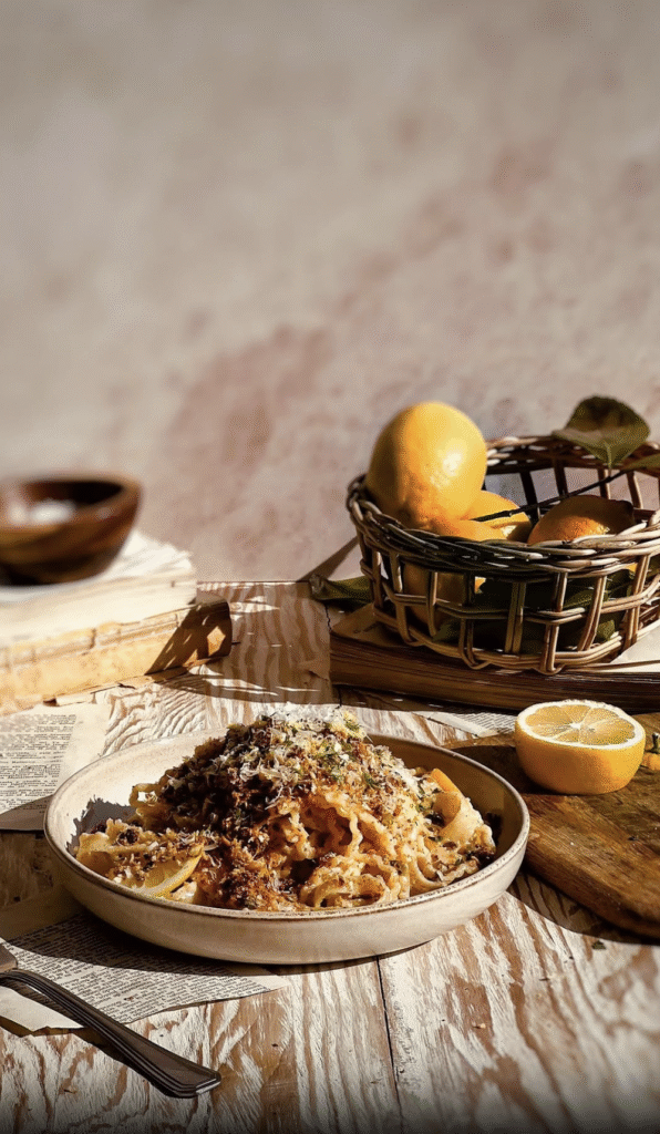 10. Servir la pasta con un poco de crumble encima, más ralladura de limón, parmesano y un toque de eneldo fresco.